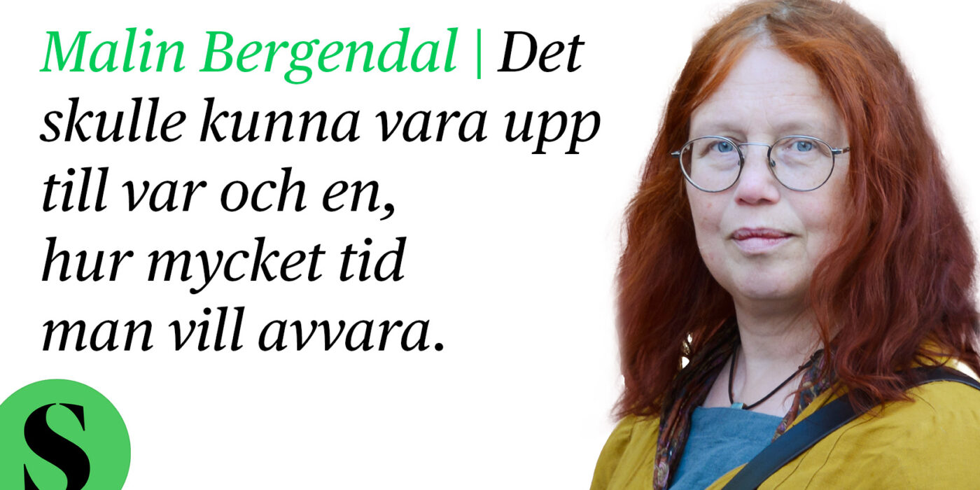 Det skulle kunna vara upp till var och en, hur mycket tid man vill avvara. Men vi lever i ett samhällssystem som är uppbyggt kring att var och en ska försörja sig genom att sälja sin tid. Dessutom finns det ingen garanti för att någon vill köpa den tid man har till salu.