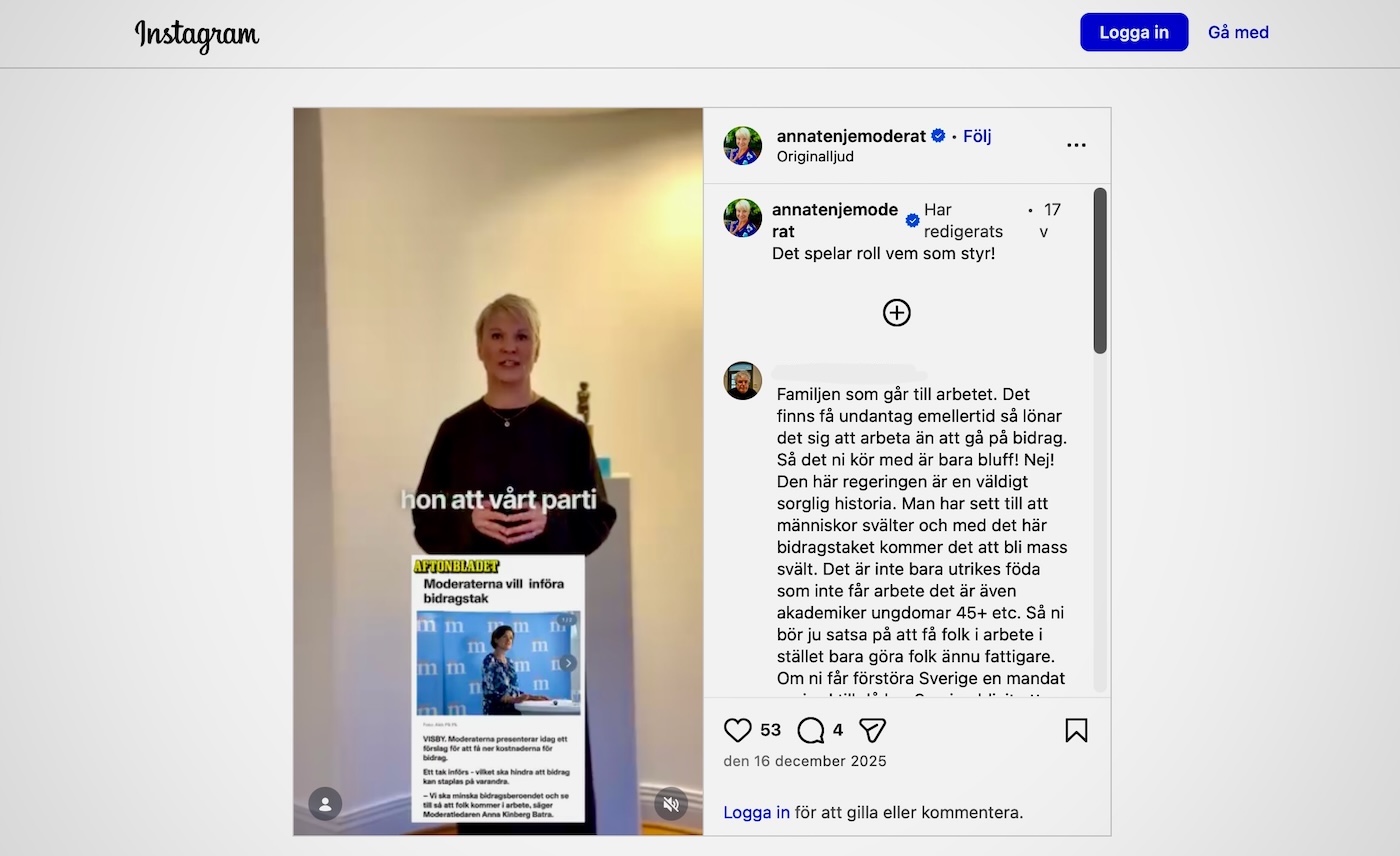 Och socialförsäkringsminister Anna Tenje (M) skrev i december på Instagram. ”Det spelar roll vem som styr”. I videon säger hon: