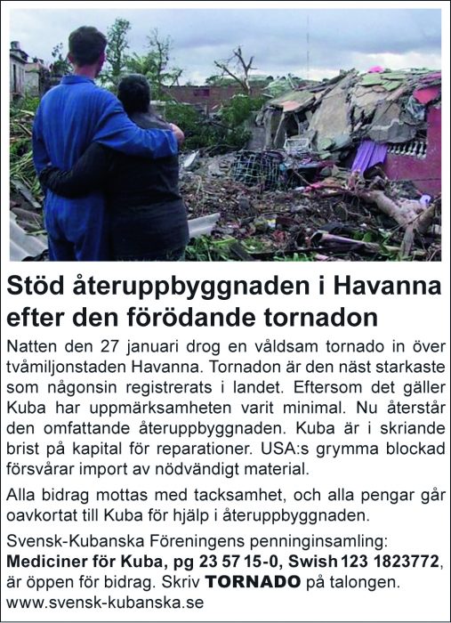 Annons: Stöd återuppbyggnaden i Havanna