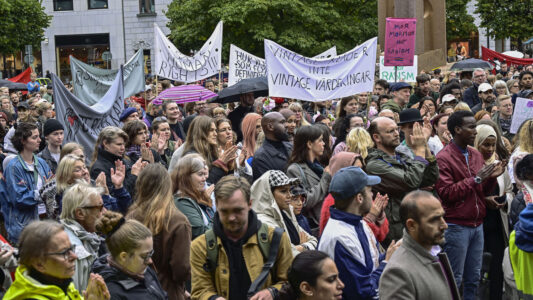 ”Vi protesterar mot Tidöavtalet och en främlingsfientlig flyktingpolitik”