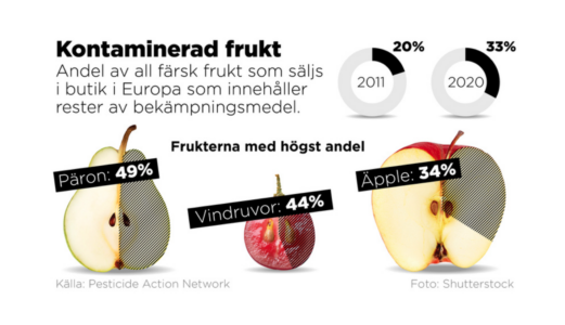 Rester av bekämpningsmedel i många päron och äpplen