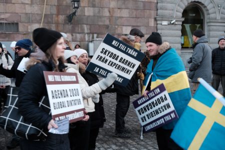 Demonstration mot vaccin – nystartat parti bakom