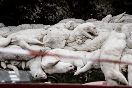Kor instängda med döda hönor