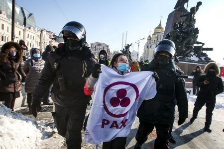 Tusentals i protest i Moskva – Navalnyjs hustru bland de gripna