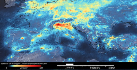 Viruseffekt i Europa syns från rymden