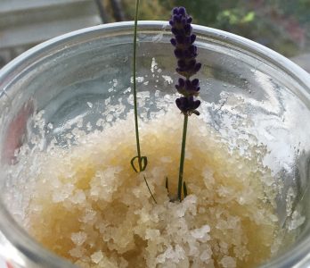 Salt + kokosolja + olivolja + lavendel = skrubb