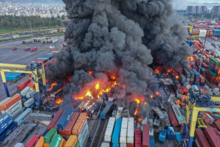 Efter skalvet: Hamn i lågor