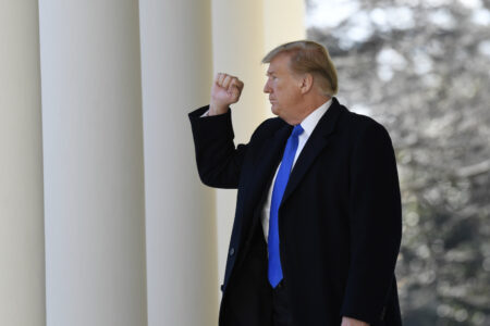 Trump pekas ut under rättsprocess mot Proud boys